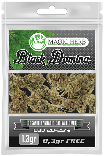 Περιεχόμενο: Κάθε συσκευασία περιέχει 1.3γρ ανθό CBD Cannapark Black Domina.