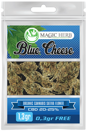 Περιεχόμενο: Κάθε συσκευασία περιέχει 1.3γρ ανθό CBD Cannapark Blue Cheese.